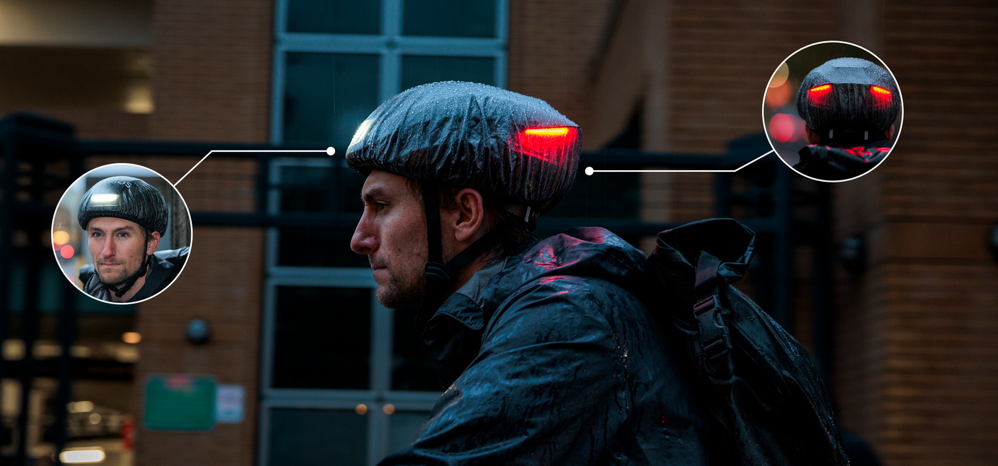 Sudden downpour? No problem. This fully transparent waterproof cover shields your helmet from the rain while keeping both front and rear lights clearly visible.