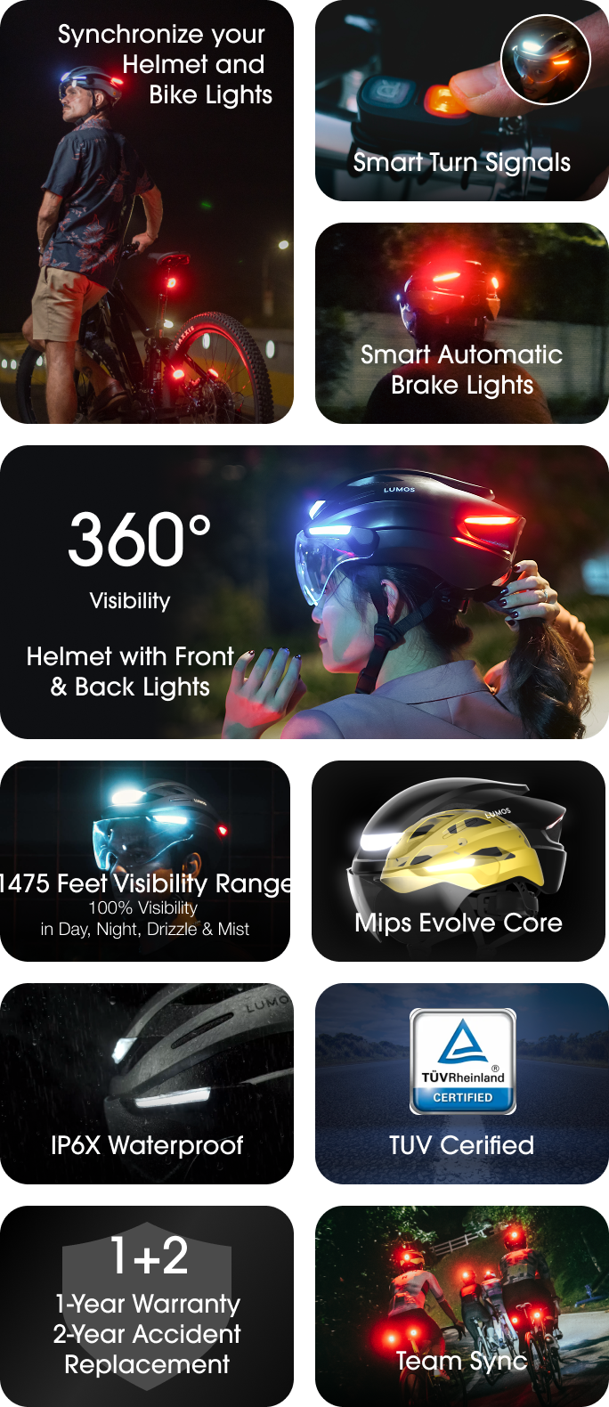“This helmet is a game changer. Front and rear lights with turn signals and brake lights. Super lightweight and comfortable. Air vents everywhere for maximum cooling. I also ordered with MIPS for even more safety and protection. Combined with the firefly lights(which I have) and I feel very safe on the roads and trails. Download the Lumos app and get ready for an experience you won’t soon forget. 5 stars all the way!”